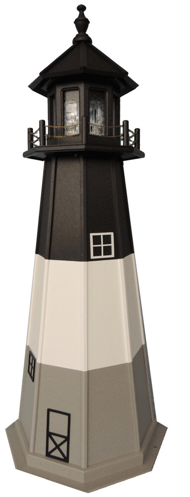 Now you can get an attractive Amish lawn lighthouse made of weather resistant Poly material. This composite material is made of recycled plastics and looks just like real wood. The difference is that it practically lasts forever in the elements. Poly is very popular in manufacturing outdoor furniture, and it’s a great material for lawn lighthouses. The color is embedded in the material - no painting is required! In addition, Poly is resistant to stains and it will not rot, split, or crack